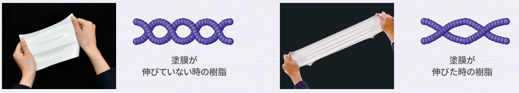 塗膜が伸縮しても樹脂同士の結びつきが断たれず、