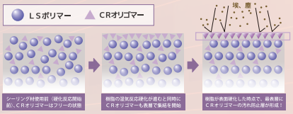 しかしオートンイクシードは、汚れ防止成分CRオリゴマー配合により、硬化初期のベタつきを軽減し、シーリング材の表面への汚れの付着を減少しています。