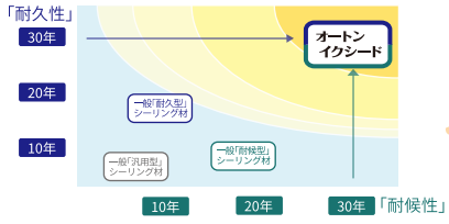 これにより一般的な「耐久型・耐候型シーリング材」の耐用年数が約10~20年