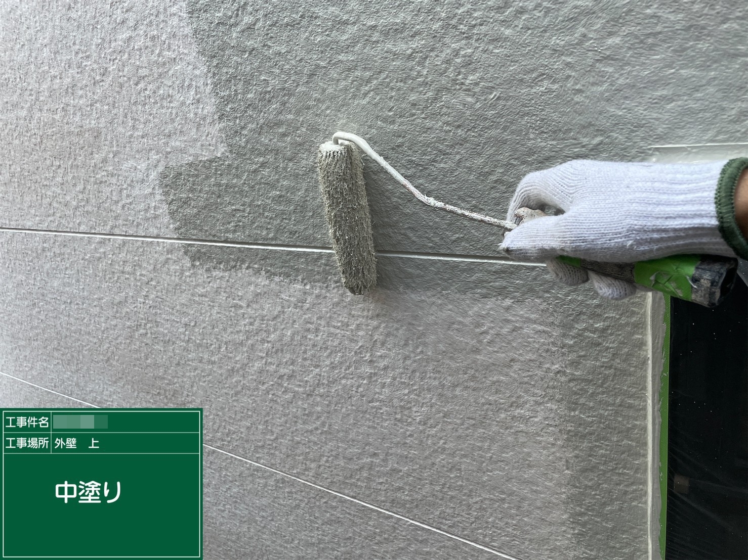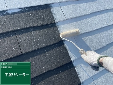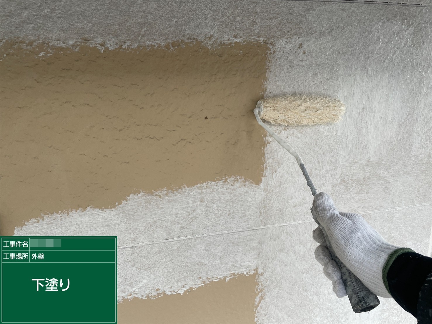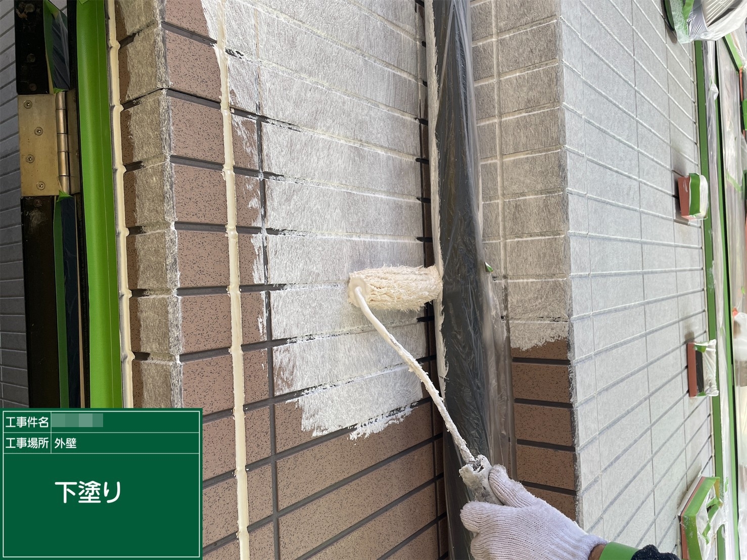 シーリング工事です。既存のシーリング材を撤去し、プライマーを塗布しています。