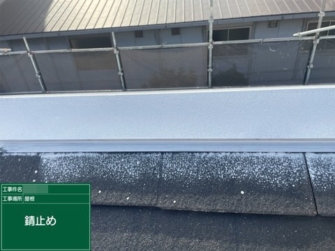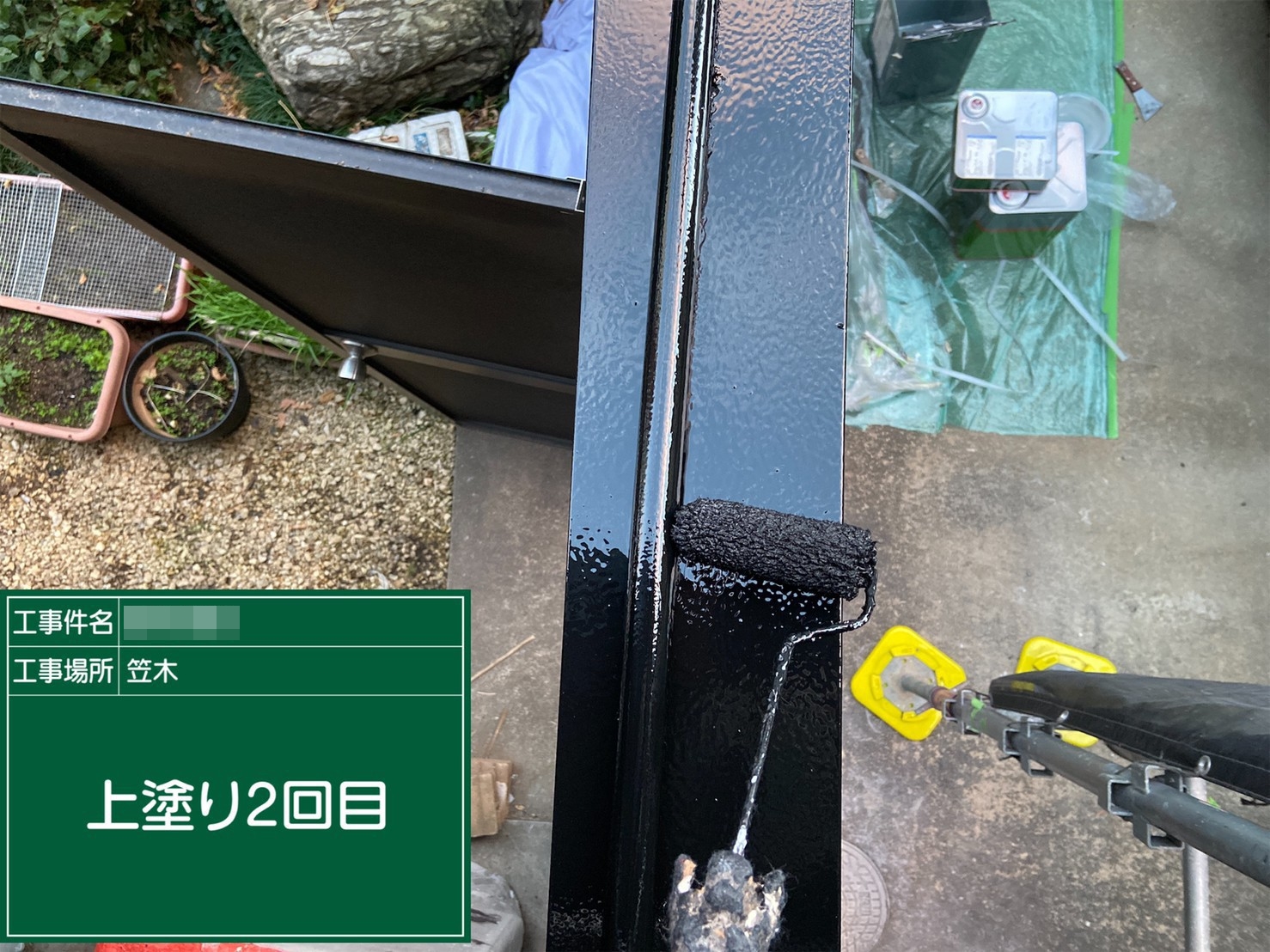笠木も錆止め⇒上塗り2回塗っていきます。