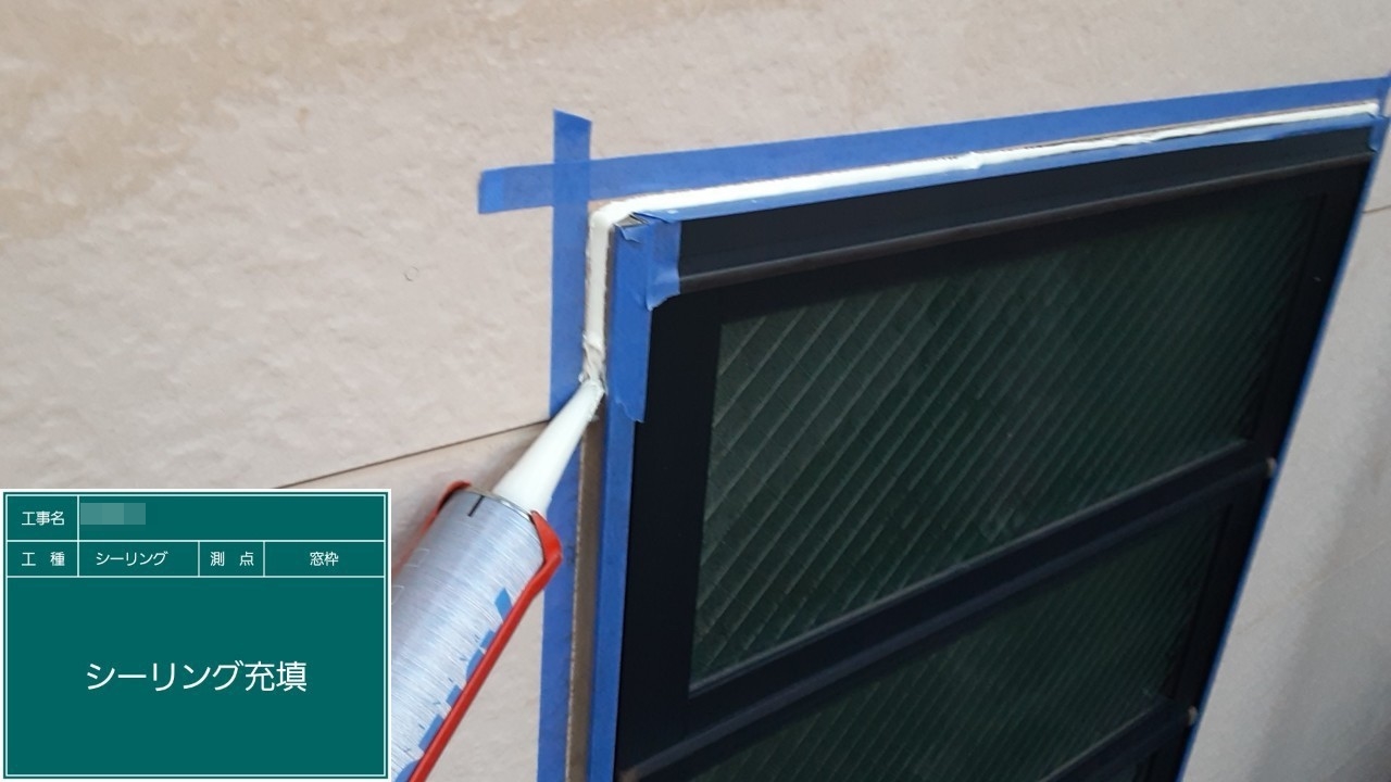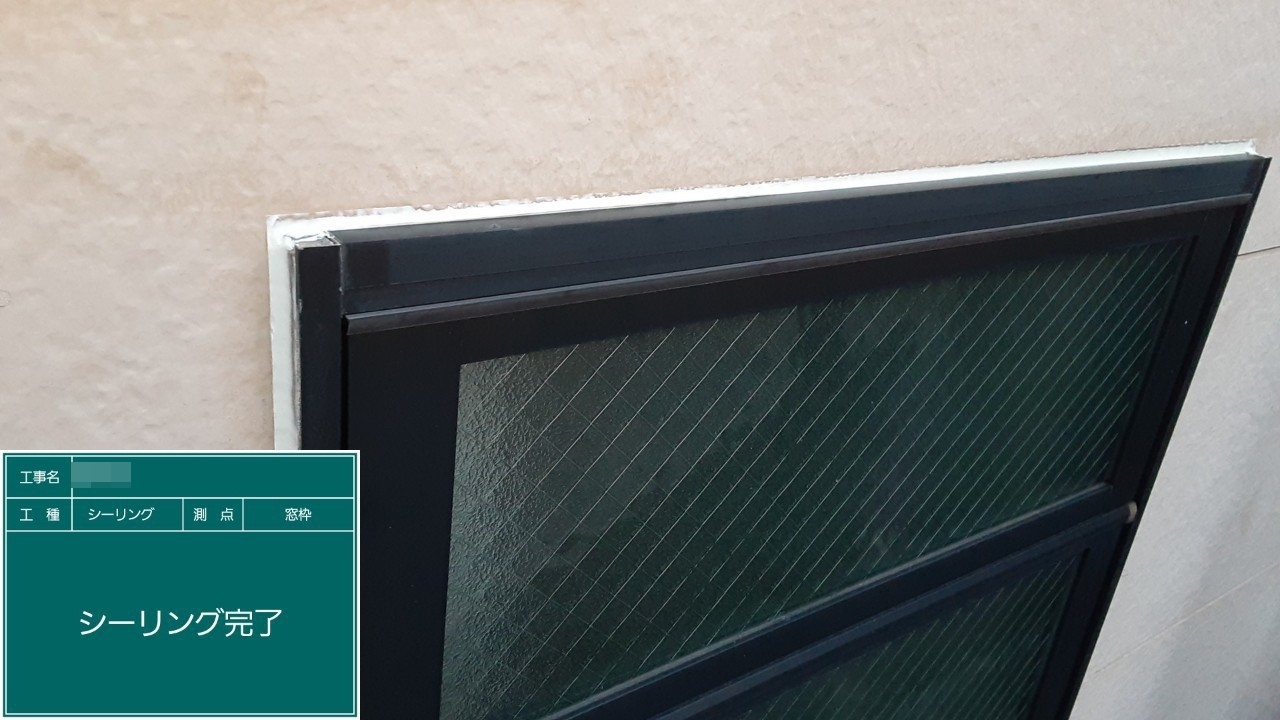 窓枠シーリング工事は、既存のシーリング材の上から新しいシーリング材を充填していきます。