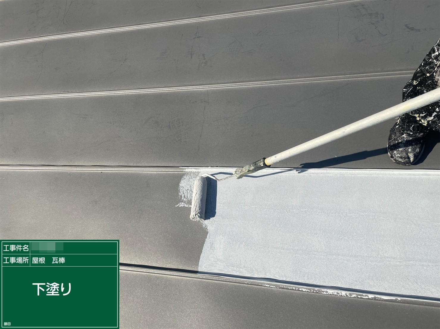 屋根・下塗り施工中