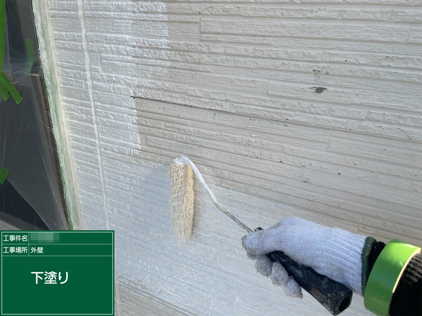 外壁・下塗り施工中