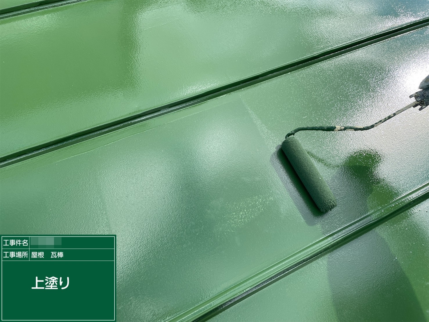 屋根・上塗り施工中