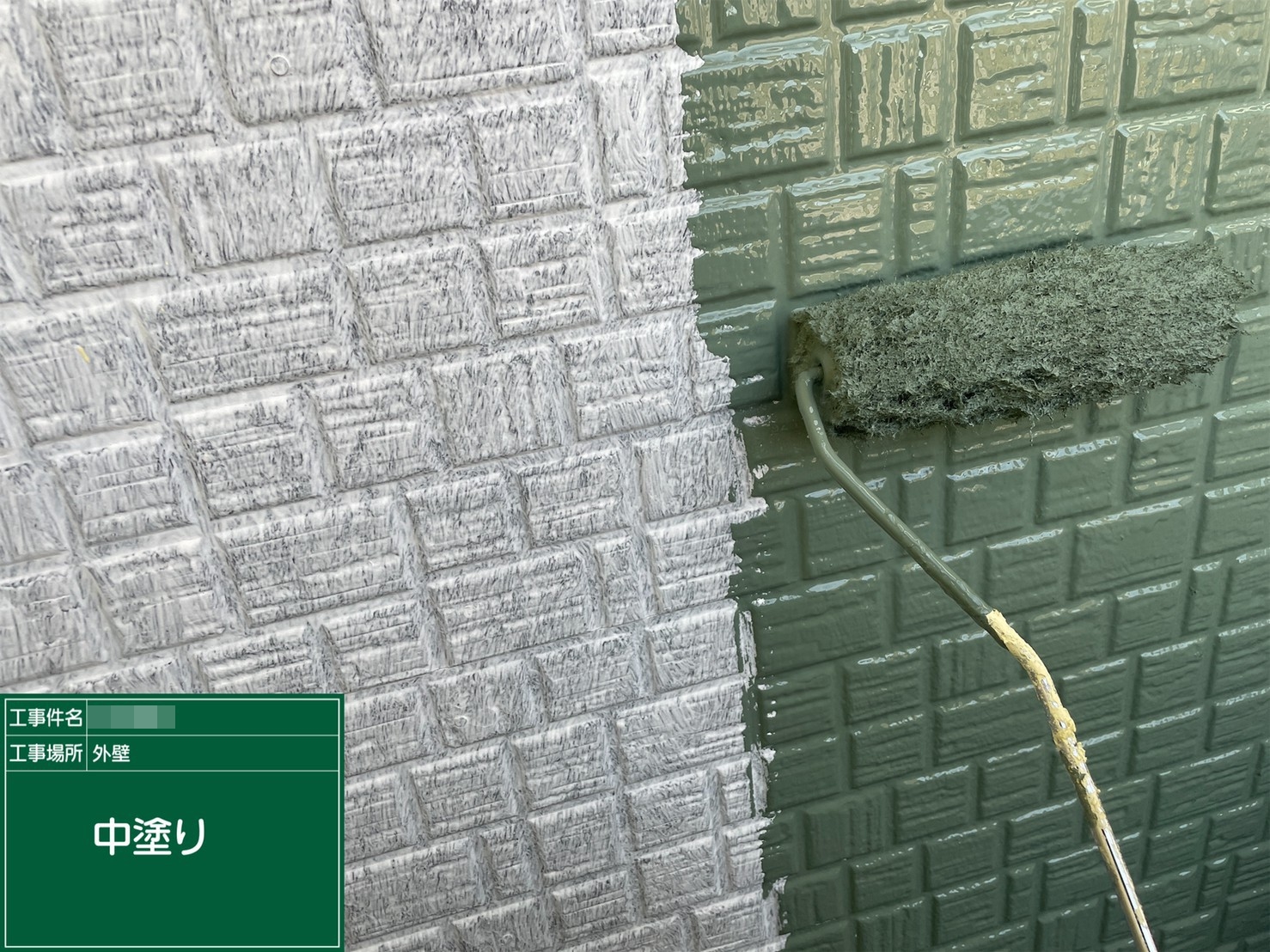 外壁・中塗り施工中