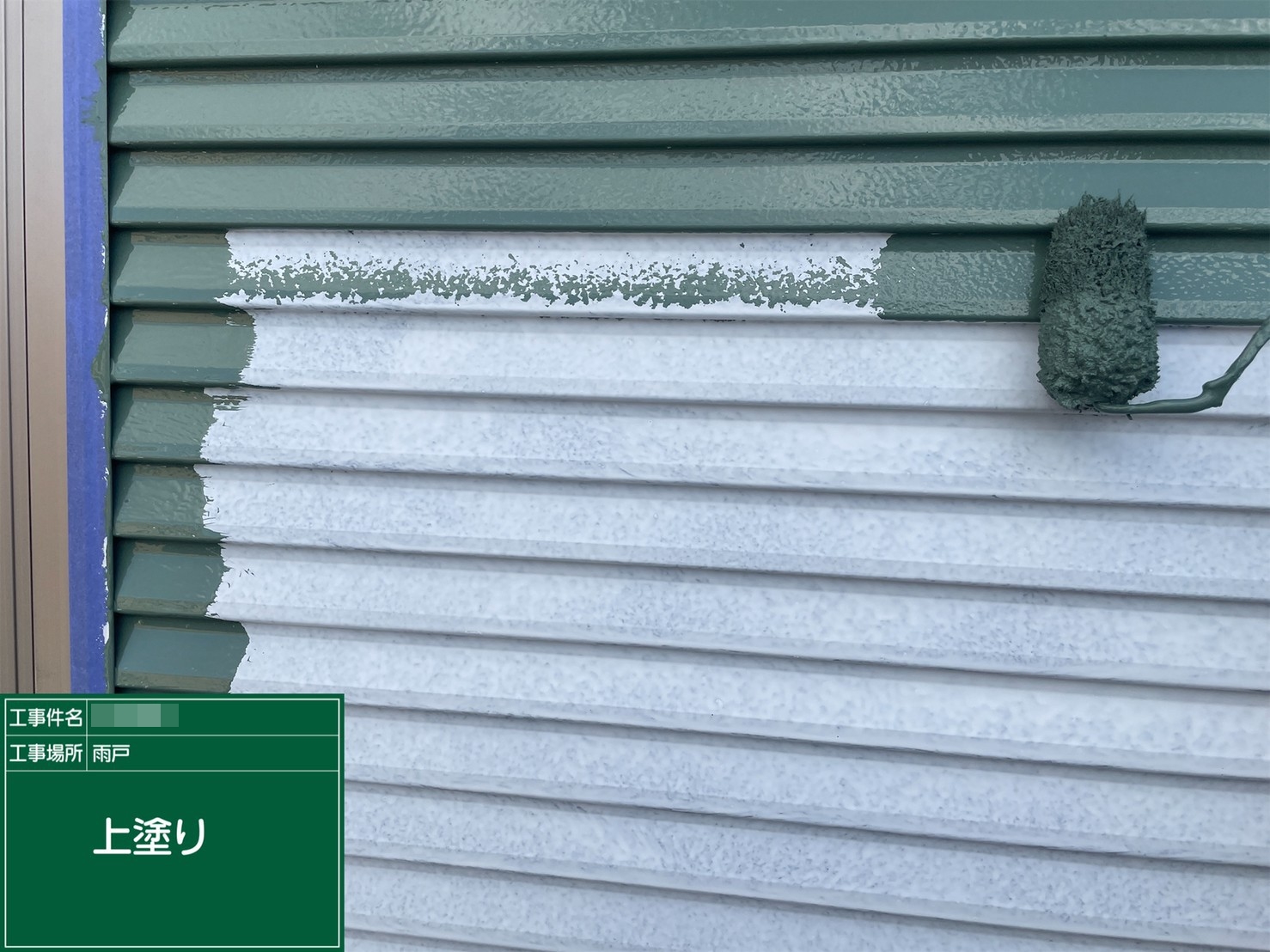 シャッターボックス・上塗り施工中