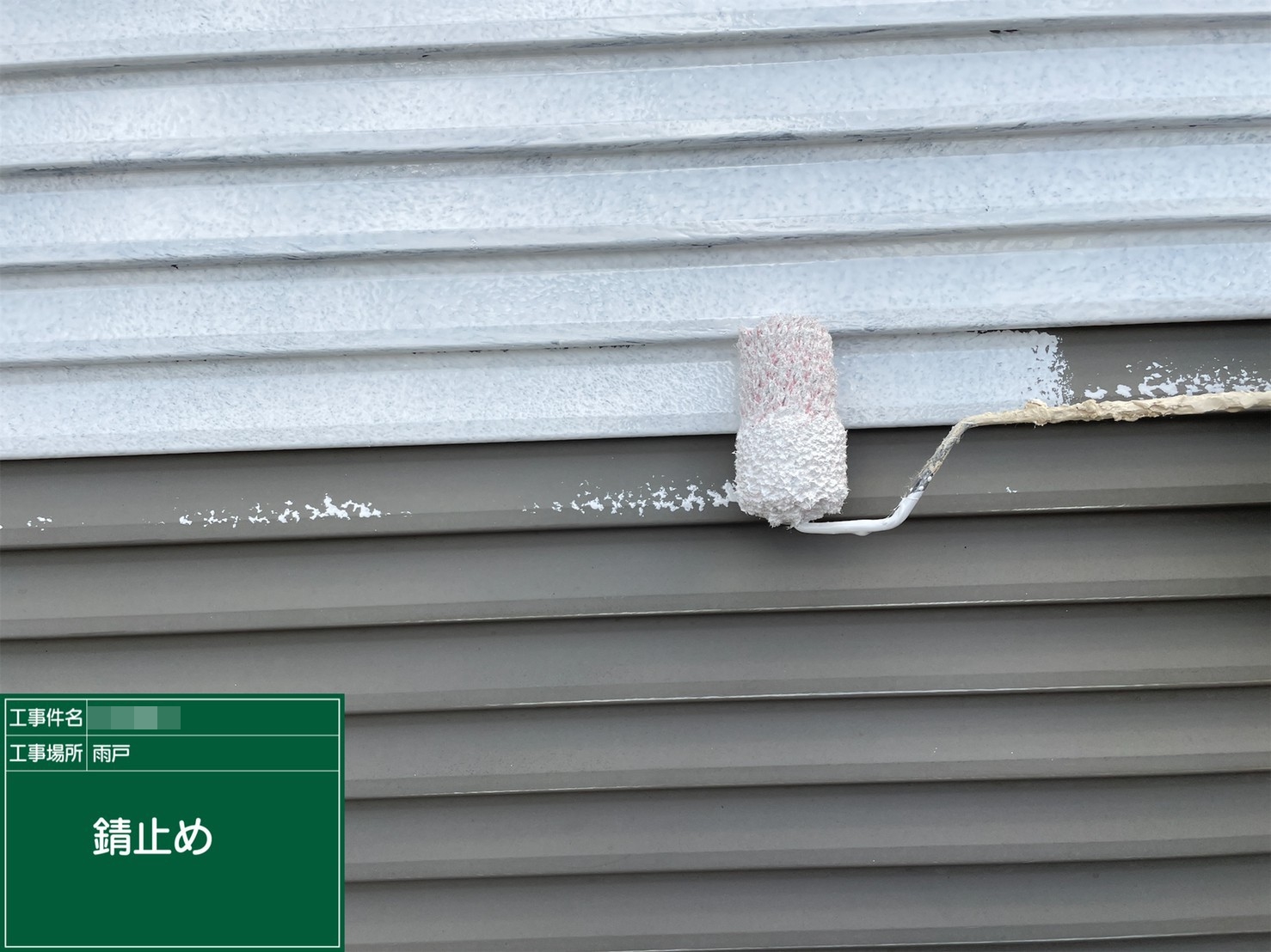 雨戸・錆止め施工中