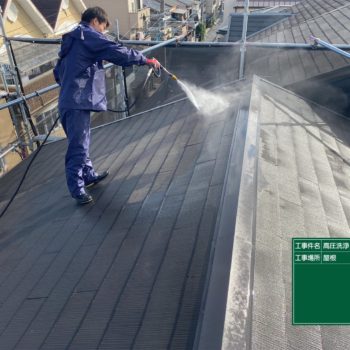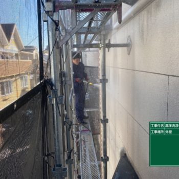 まずは、高圧洗浄機で外壁を綺麗に洗い流します。