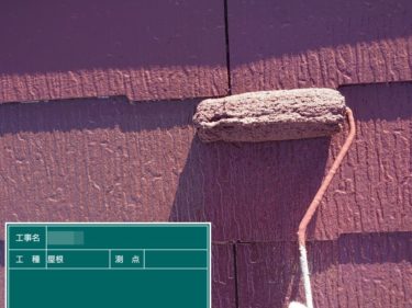 屋根下塗りです。塗ムラのないようにしっかり塗っていきます。