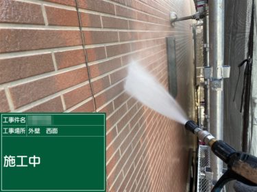 高圧洗浄機で外壁を綺麗に洗い流します。