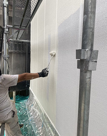 外壁も下塗り、中塗りと重ねて塗っていきます。