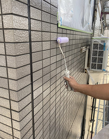 タイル地の外壁も塗装を施していきます。