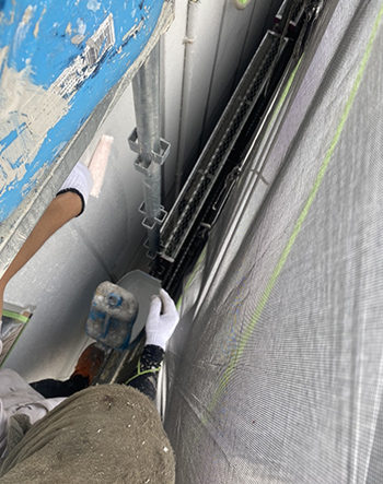 ケレン作業の様子です。汚れが落とせたら、下塗りをしていきます。