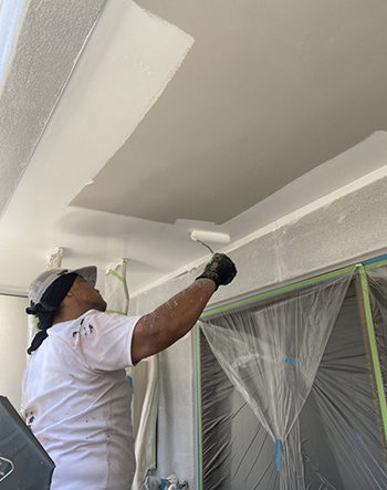 軒天も下塗り、中塗り、上塗りと塗り重ねていきます。