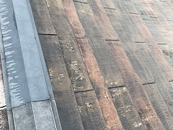 施工前の屋根の様子です。黒ずんでしまい、元の色がわからなくなっています。
